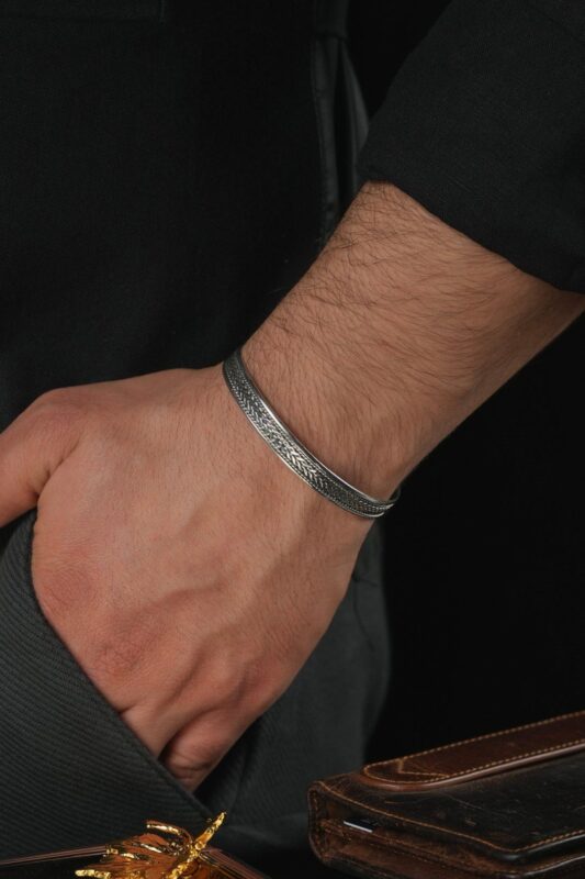 El işçiliği Class Tasarım Motif İşlemeli Gümüş Erkek Bileklik