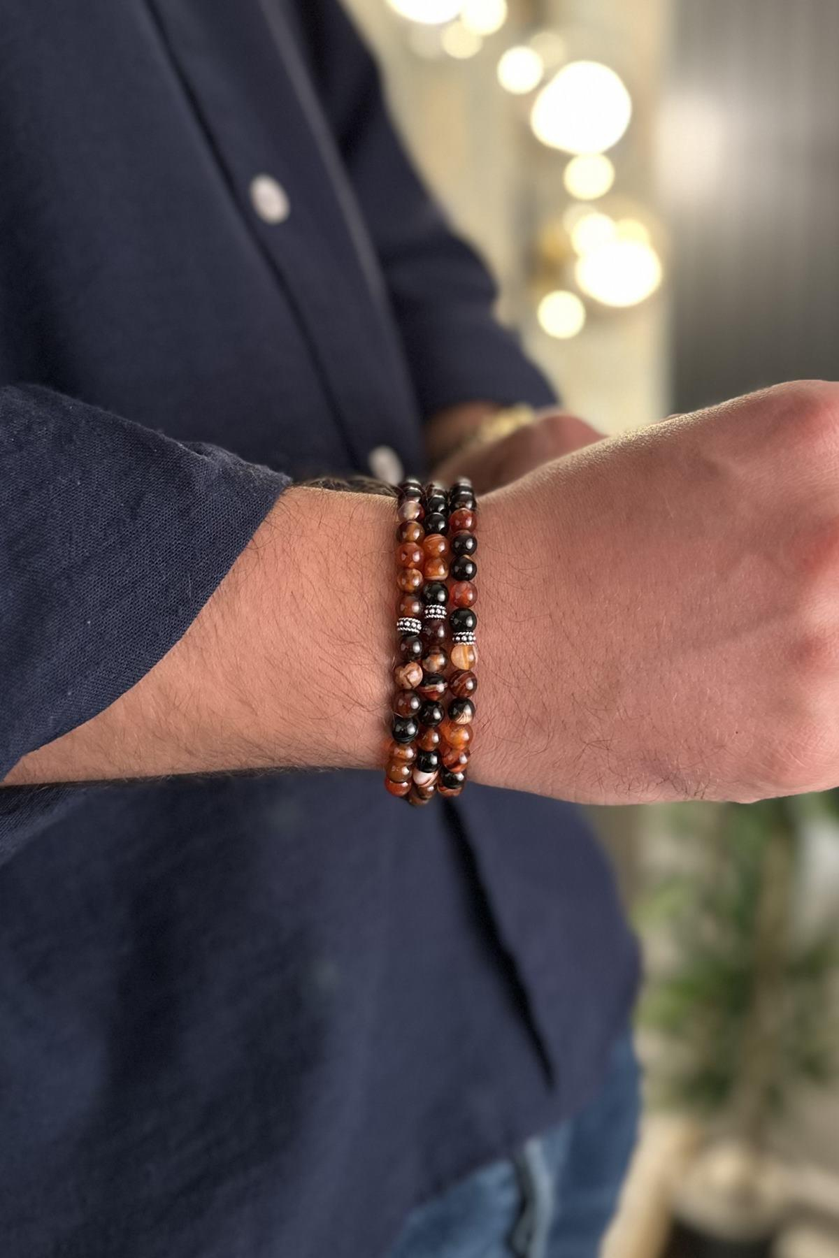 99’lu Akik Taşı Gümüş Detaylı Bileklik-Kolye-Tesbih