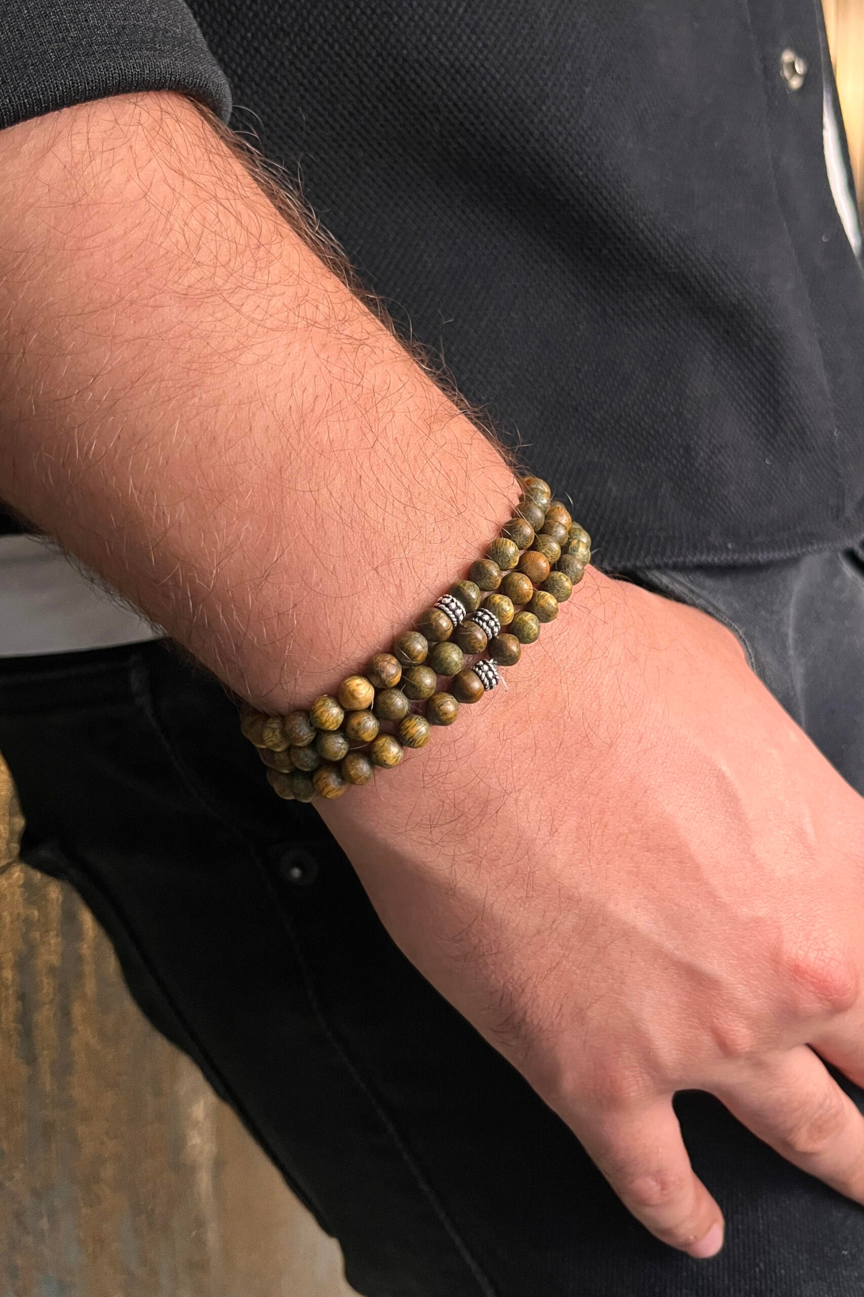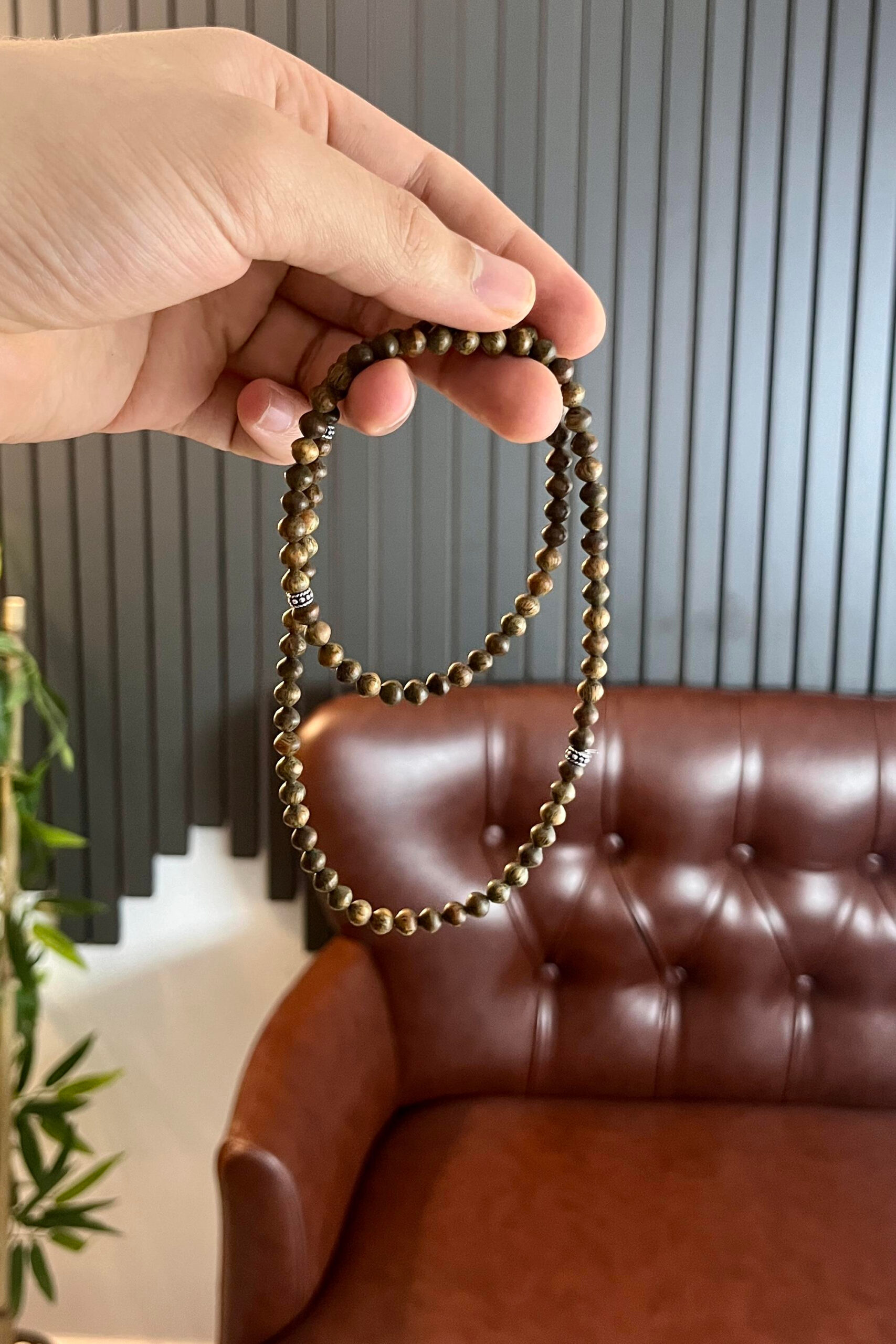 Her biri özenle seçilmiş doğal Pelesenk ağacı taneleri, elde dizilerek hazırlanmış; ara duraklarda kullanılan 925 ayar saf gümüş detaylar, tasarıma hem görsel zarafet hem de enerjisel bir güç katmıştır. Gümüş, ağacın doğal frekansını destekleyerek enerji akışını dengeler ve tasarımı daha bütünsel bir hale getirir.
