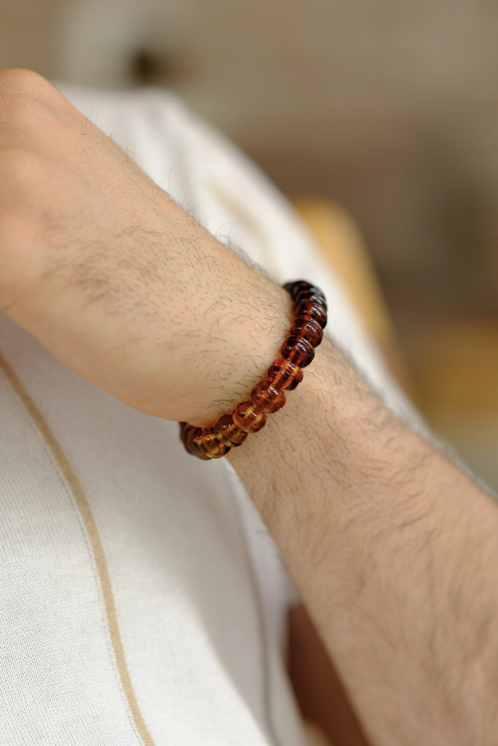 Damla kehribar, özellikle sıcaklığıyla bilinen bir taştır. Cilde temas ettiğinde kendiliğinden ısınır ve bu doğal ısısı, vücuttaki enerji akışını uyumlu hâle getirmeye yardım eder. Eski çağlardan itibaren sakinleştirici etkisiyle tanınmış; stres, gerginlik ve zihinsel yorgunluk üzerinde iyileştirici bir şifa yayıcı olarak görülmüştür. İçindeki doğal süksinik asit sayesinde hem enerji dengeleyici hem de negatif yükleri bedenden uzaklaştırıcı özelliklere sahiptir. Bu nedenle kişinin ruh hâlini hafifletir, içsel dinginliği destekler ve günlük yaşamın koşturmacasında huzurlu bir alan yaratır.