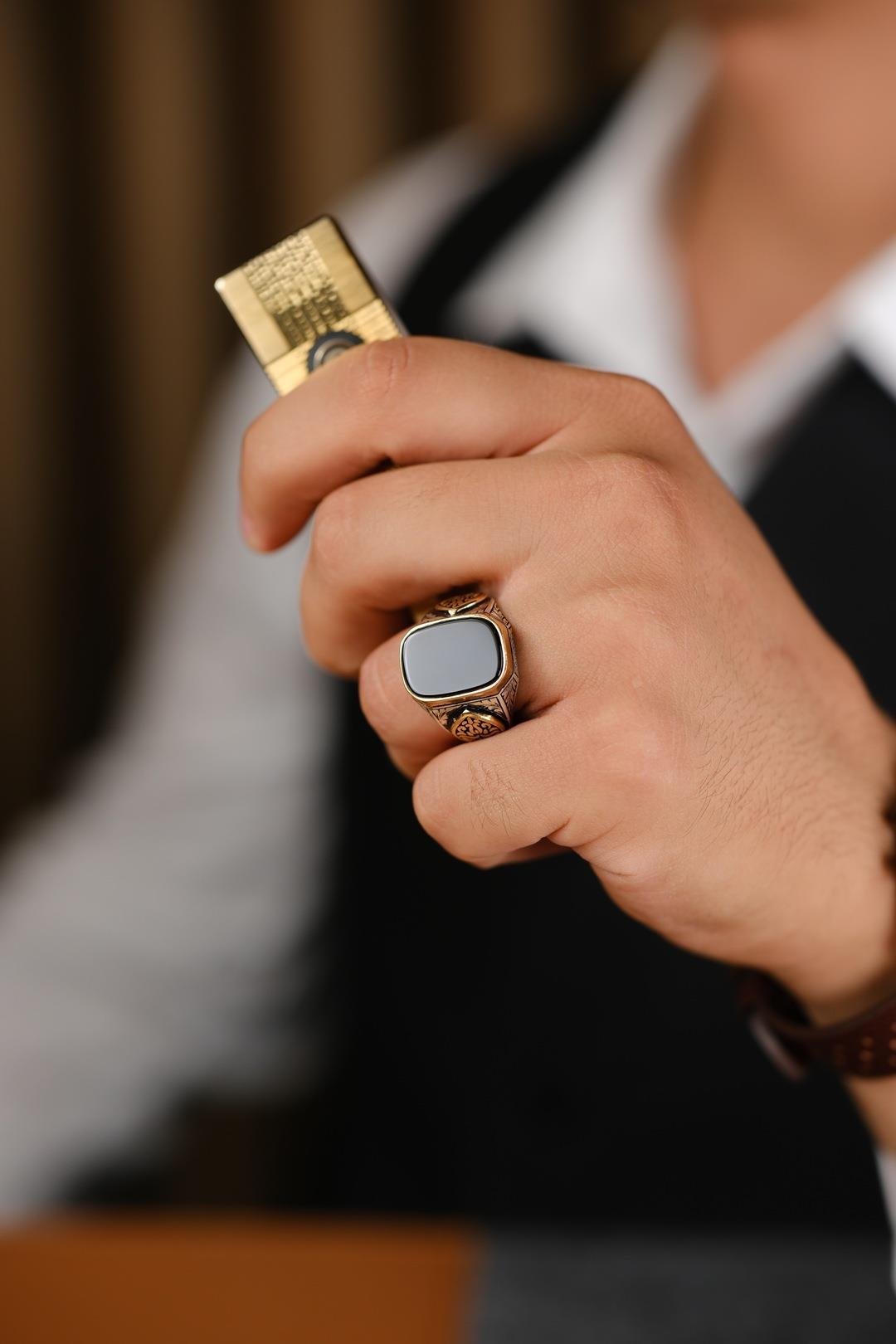 Beyzade Tasarım Yüzük, kendine özgü duruşunu detaylarda arayan, asaletle harmanlanmış bir tarzı benimseyen ve şıklığında derin anlamlar taşımayı seven erkekler için özel olarak hazırlanmıştır. Modern çizgilerle bezenmiş geleneksel ruhu, bu tasarımı hem estetik hem de sembolik açıdan değerli kılar.