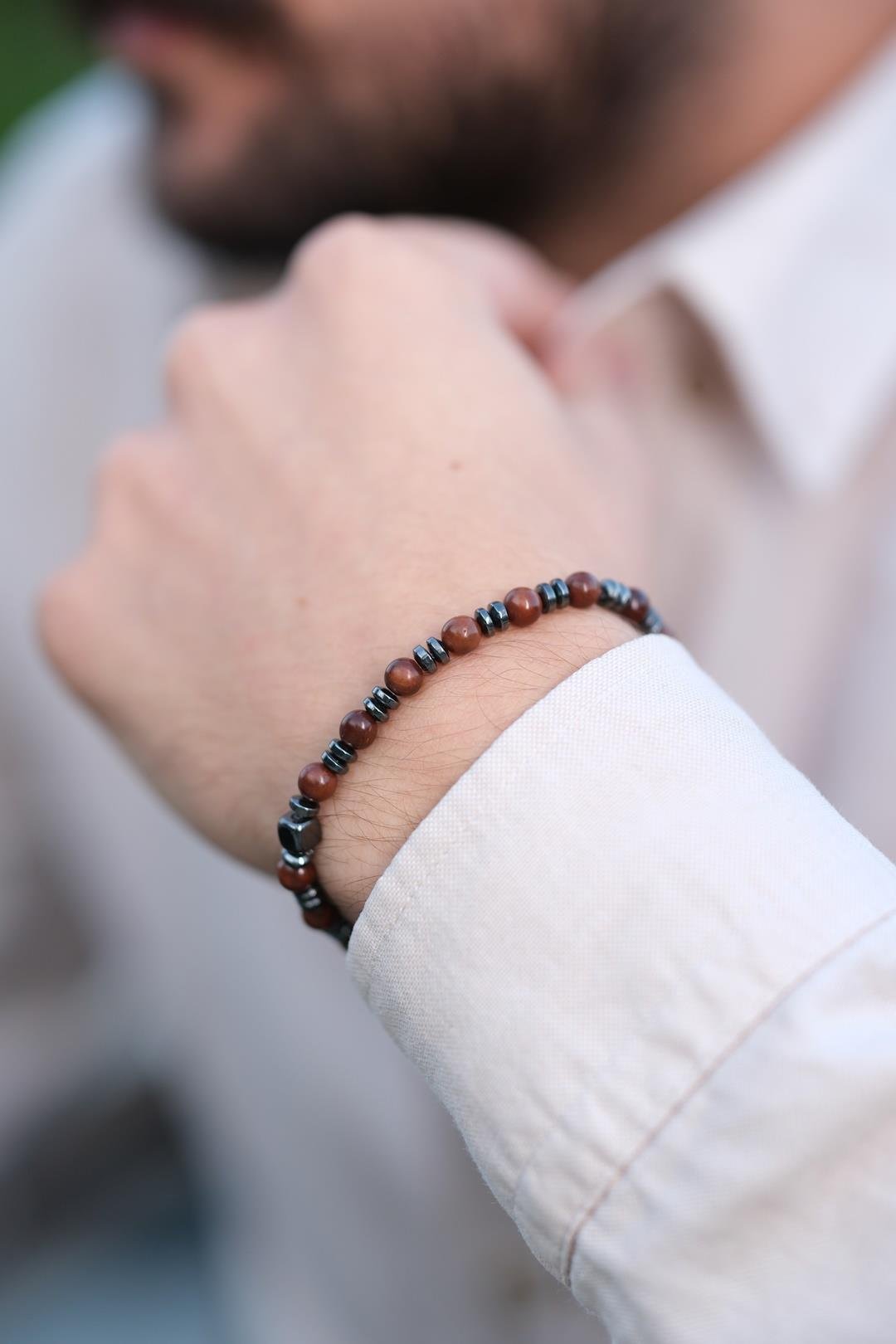 Hematit taşı ise güçlü ve koruyucu yapısıyla bilinir. Topraklayıcı enerjisi sayesinde kişinin ayaklarını yere bastırmasına, düşüncelerini netleştirmesine ve içsel gücünü hatırlamasına yardımcı olur. Negatif enerjiyi dengelediğine, zihinsel dağınıklığı azaltarak kararlılık ve özgüven duygusunu desteklediğine inanılır. Parlak ve koyu dokusu, tasarıma güçlü bir duruş ve asil bir kontrast kazandırır. Bu iki bileklik bir araya geldiğinde; biri sakinleştirirken diğeri güçlendirir, biri yumuşak bir denge sunarken diğeri sağlam bir duruş kazandırır. Doğal ve zamansız tasarımı sayesinde günlük kullanımda sade bir şıklık sunar, aynı zamanda enerjisel bir bağ kurmak isteyenler için anlamlı bir aksesuar haline gelir.