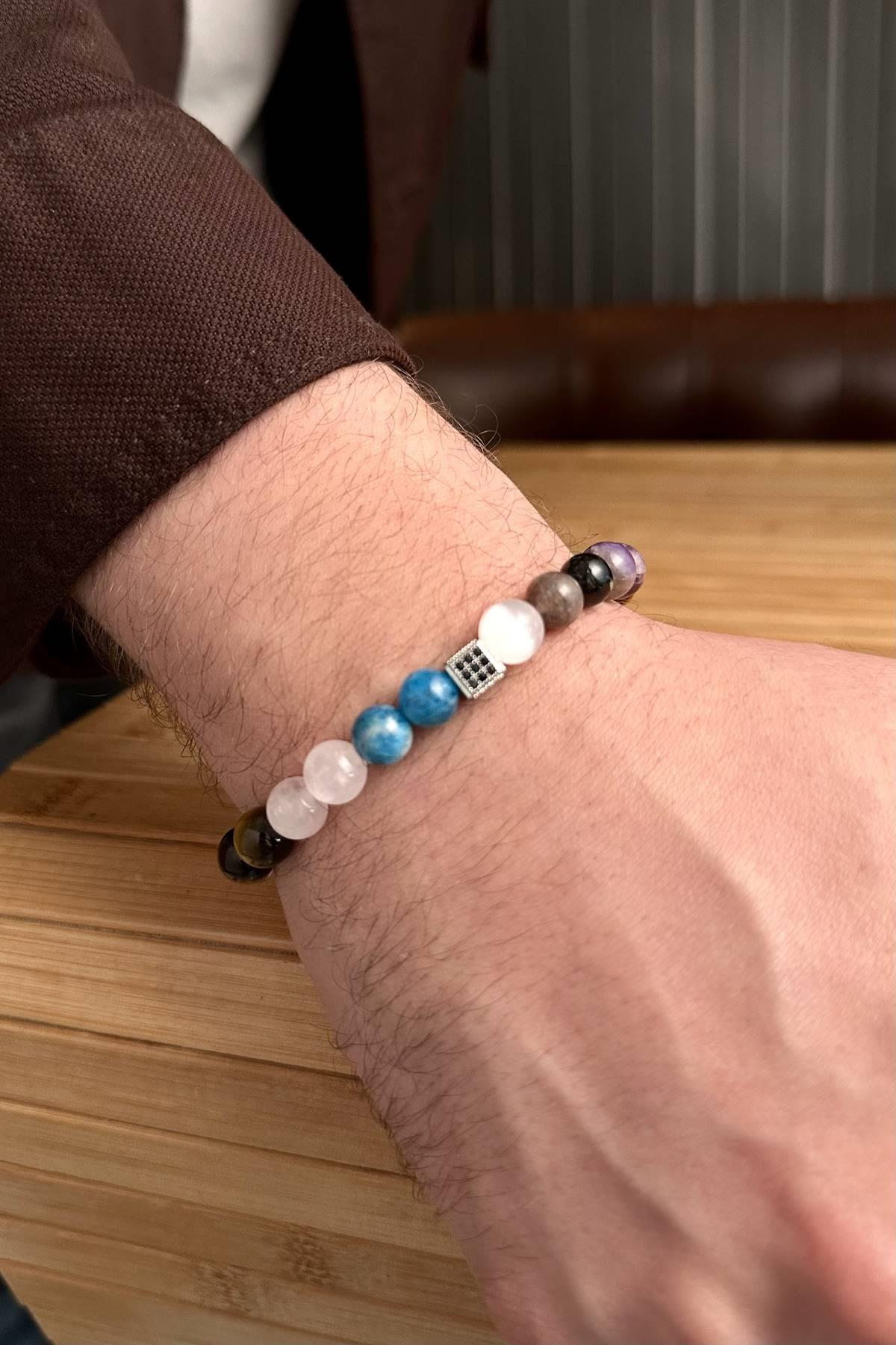 Ana Sayfa Tüm Ürünler Diamond Serisi Gümüş Detaylı Doğal Taş Karma Bileklik