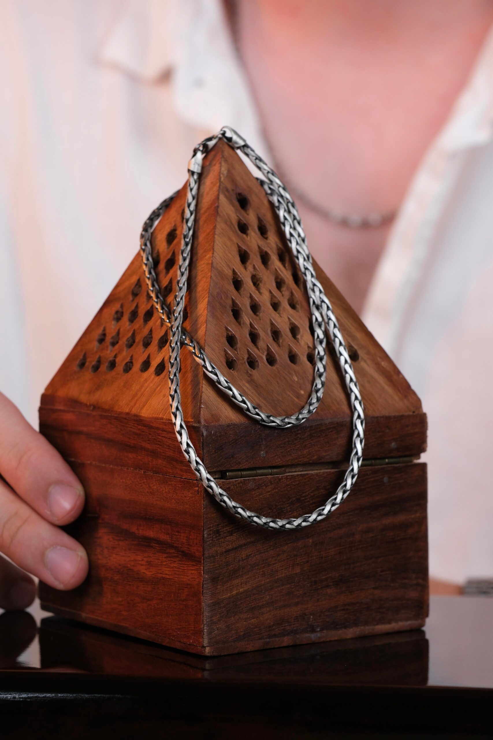 Gümüşün doğasında bulunan koruyucu ve dengeleyici enerji, özellikle erkeklerin güçlü ve sakin bir aura oluşturmasında önemli bir yere sahiptir. Tarih boyunca savaşçılardan liderlere kadar birçok erkeğin tercihi olan gümüş, zihni berraklaştırdığına, odaklanmayı güçlendirdiğine ve negatif enerjiyi uzaklaştırdığına inanılan bir madendir. Bu nedenle yalnızca bir kolye değil; taşıyana güç, dinginlik ve özgüven katan bir tamamlayıcıdır.