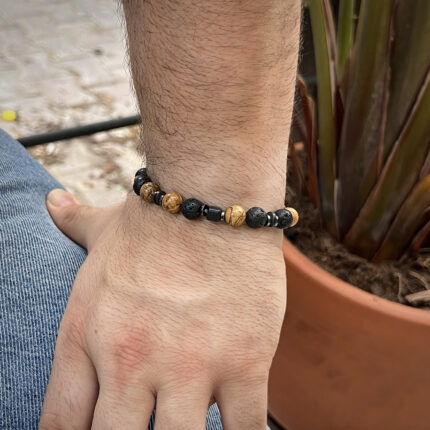 Odun Jasper & Hematit Taşlı Erkek Bileklik