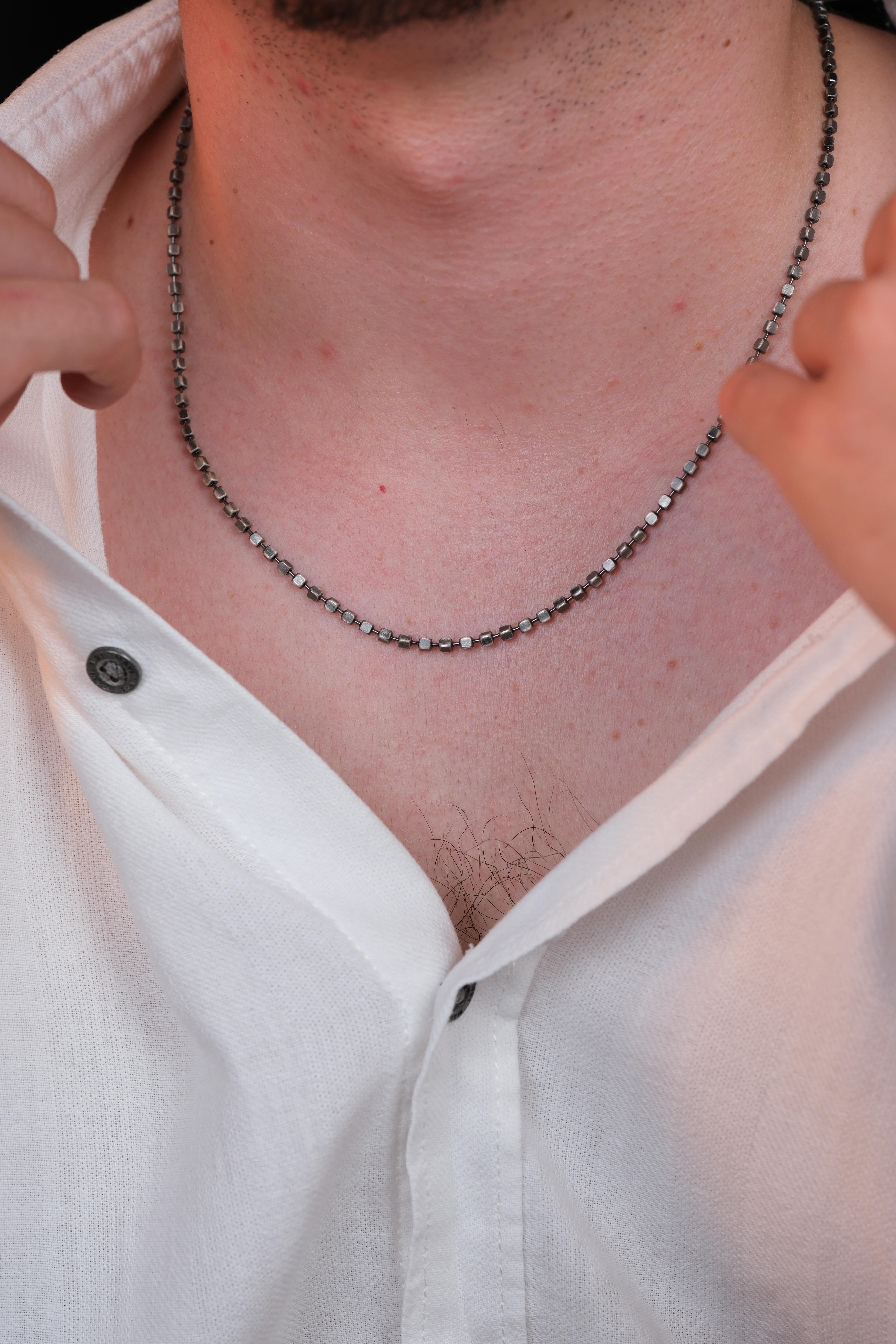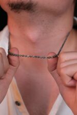 Bu özel zincir, hem modern erkek stilinin minimalist çizgisini koruyor hem de gümüşün tarihsel gücünü taşımaya devam ediyor. El işçiliğinin zarafetini, gümüşün maskülen enerjisiyle birleştiren bu tasarım; yıllar boyunca kullanılacak, asla modası geçmeyecek bir parça olarak öne çıkıyor.