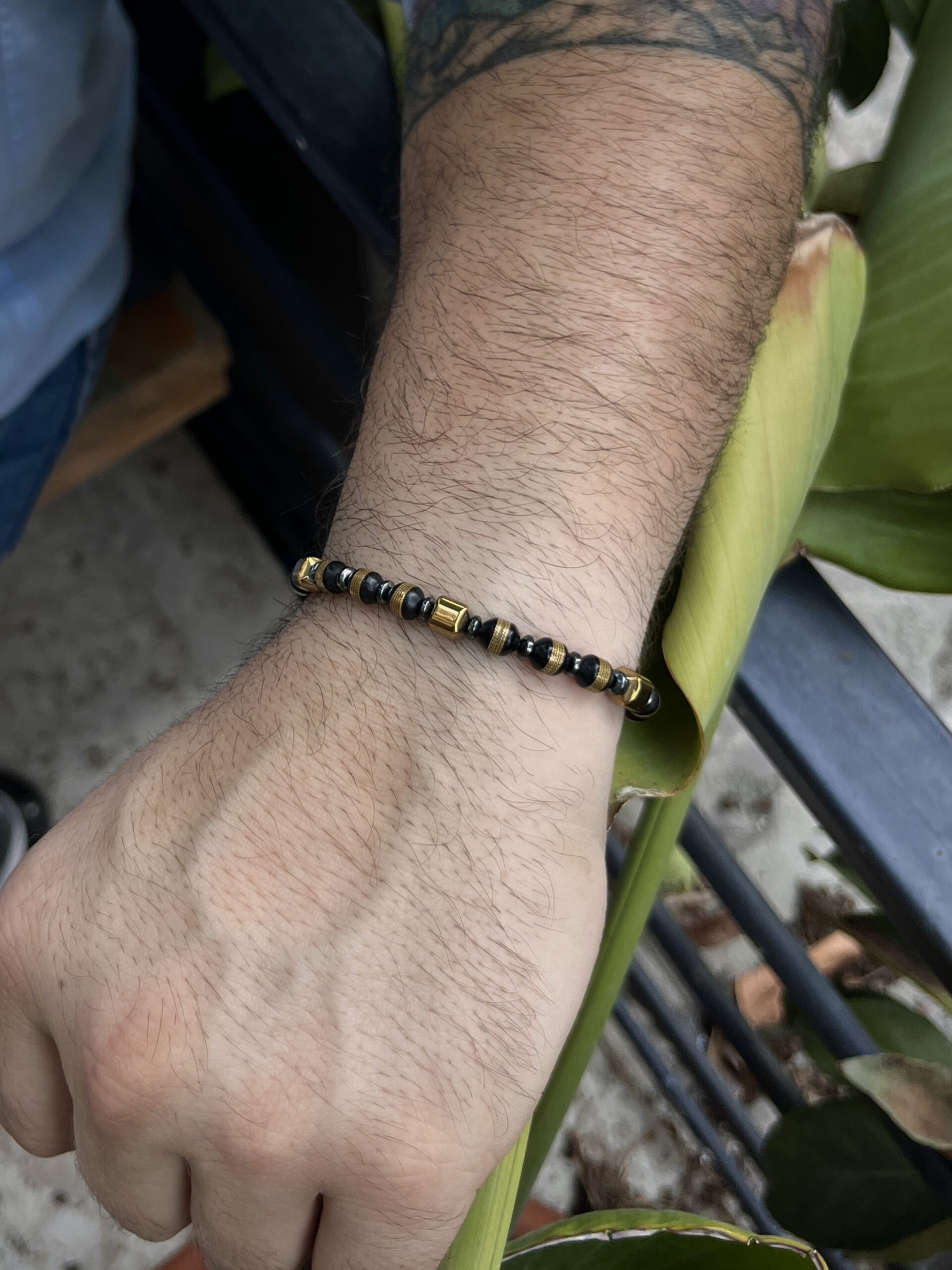 Doğanın güçlü enerjisini taşıyan bu özel bileklik, pirinç sarmalların simgelediği süreklilikle, kuka ağacının dinginliği ve hematit taşının koruyucu gücünü bir araya getiriyor. Erkek enerjisine odaklanan bu tasarım; gücü, kararlılığı ve özgüveni beslerken, zihinsel dengeyi korur ve negatif enerjiden arındırır. Kendi yolunu çizmek isteyen erkekler için hazırlanan bu bileklik, hem şıklığın hem de içsel gücün simgesi olarak bilekte hayat bulur.