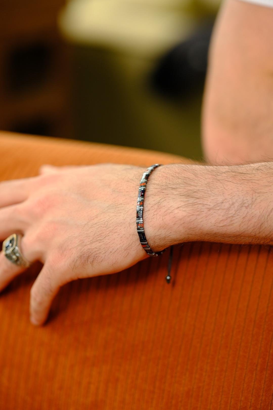 Bu özel tasarım bileklik, doğanın metalik asaleti olan Hematit taşı ile erkek enerjisinin dengeli gücünü buluşturur. Hematit; kararlılığı, özgüveni ve zihinsel netliği artıran yapısıyla bilinir. Negatif enerjiyi uzaklaştırırken, kişinin içsel dengesini güçlendirir ve odaklanma yetisini derinleştirir. Bu özel bileklik ayarlanabilir ipe sahip olup, konforlu bir kullanım sunar.