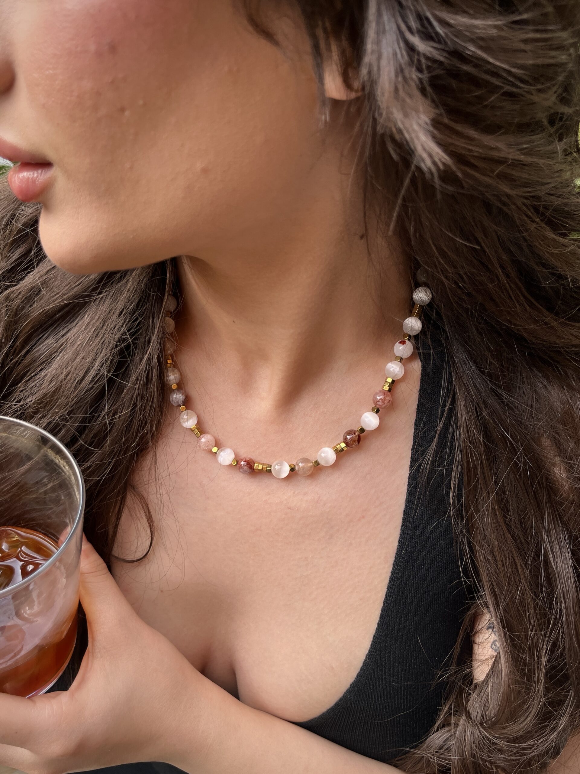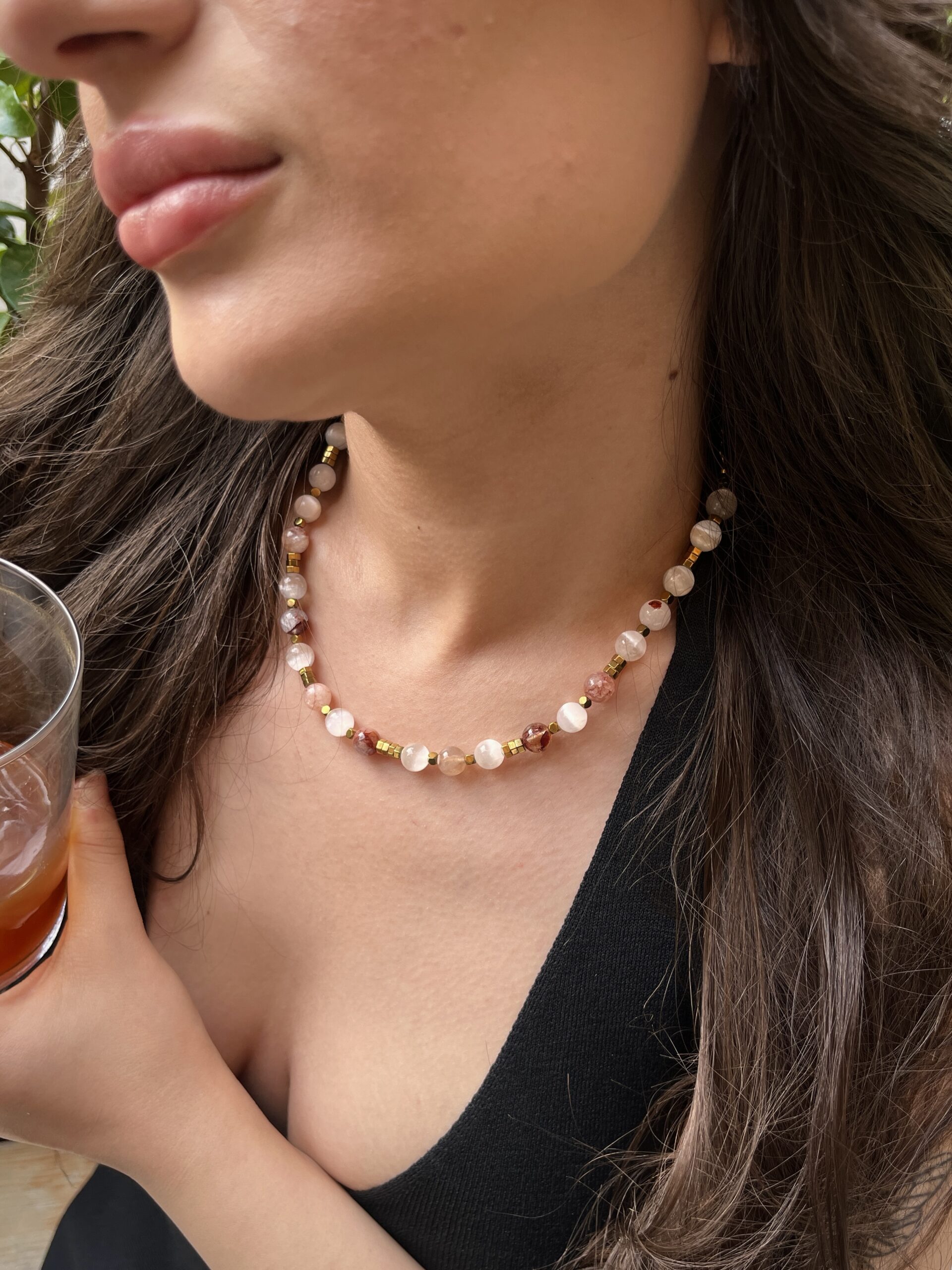 Selenit, hematit ve kuvarsın arındırıcı uyumuyla hazırlanan bu özel kolye; hem enerjiyi yükseltmek hem de ruhu hafifletmek için tasarlandı. Selenit’in saflaştırıcı ve dinginleştirici titreşimi, kuvarsın berraklaştıran ve niyetleri güçlendiren enerjisiyle birleşiyor. Hematit ise tüm bu yüksek frekansı dengeleyerek sizi köklüyor, zihninizi netleştiriyor ve içsel gücünüzü destekliyor.