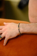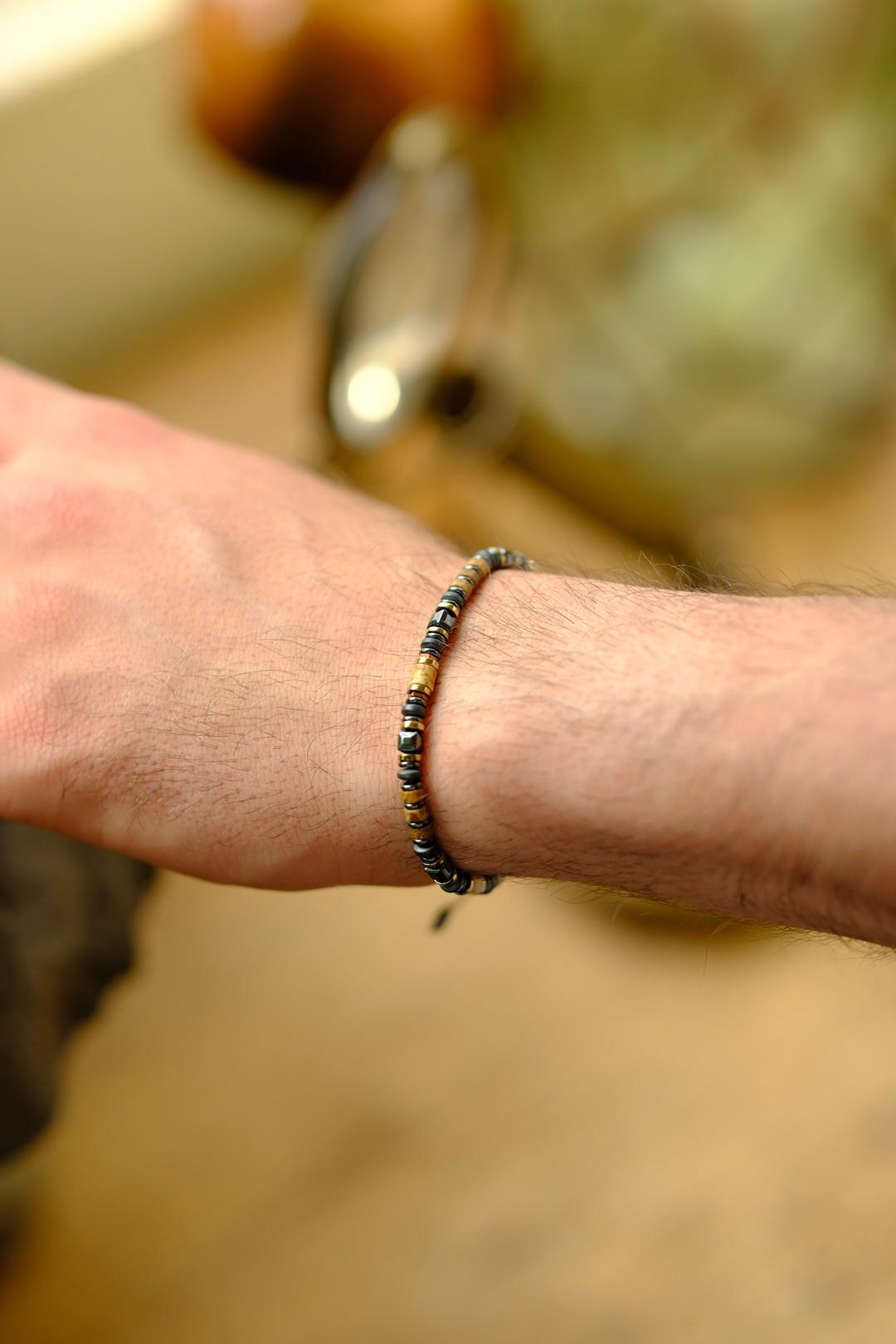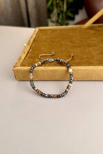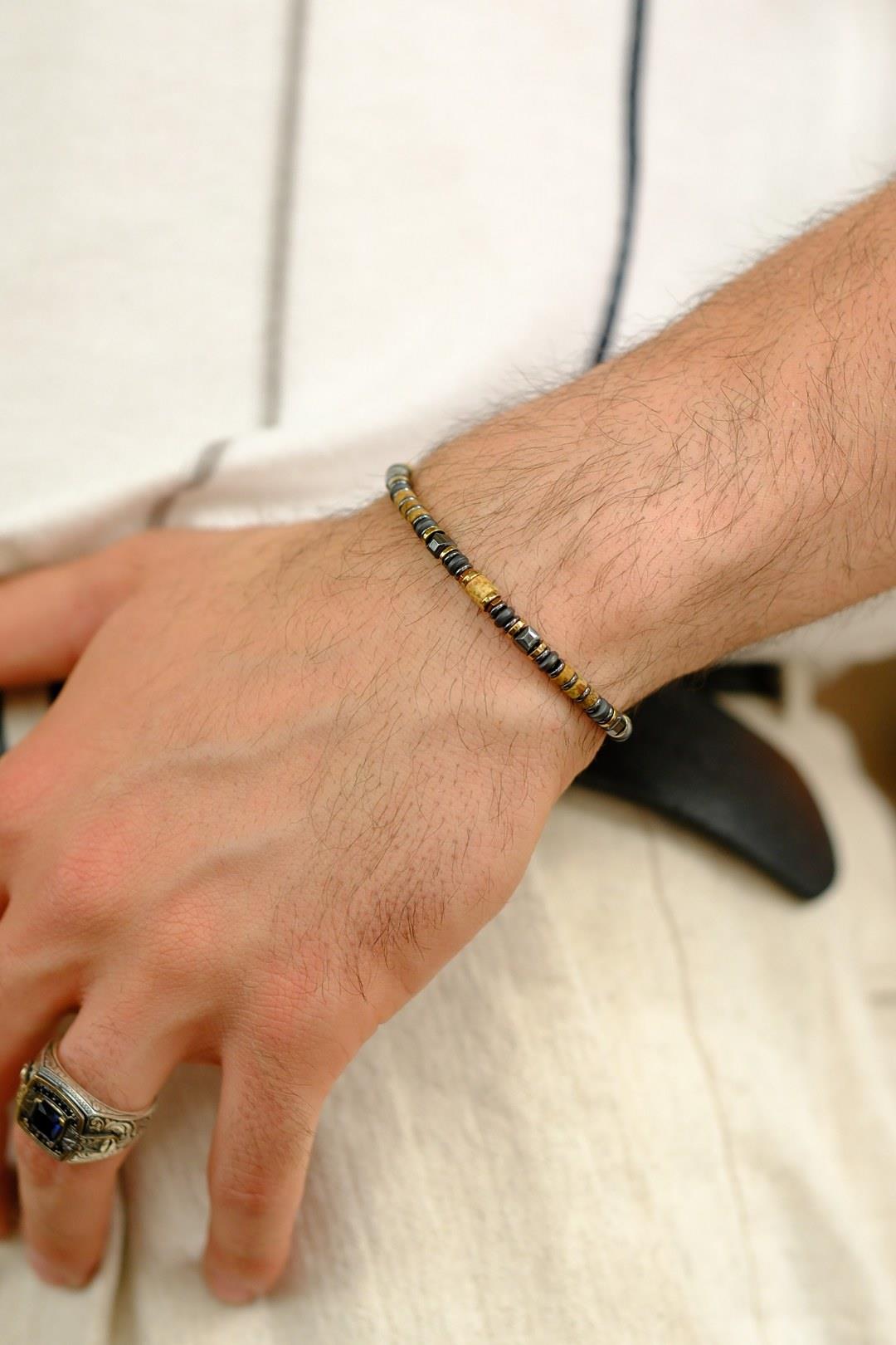 Tasarımda kullanılan doğal hematit taşı, tarih boyunca denge, güç ve topraklanma enerjisiyle ilişkilendirilmiştir. Zihinsel netliği desteklediğine, stresi azalttığına ve kişiyi dış etkenlere karşı korumaya yardımcı olduğuna inanılan hematit; özellikle yoğun tempo ve baskı altında olan erkekler için güçlü bir denge taşı olarak kabul edilir. Metalik gri tonu ve kendine has parlak dokusu, bilekliğe net, kararlı ve sofistike bir görünüm kazandırır.